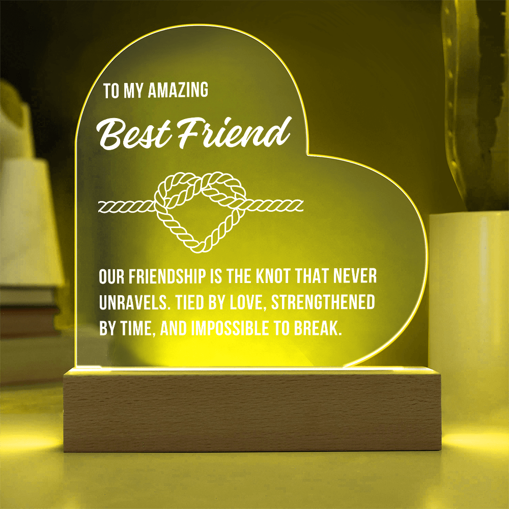 Celebrate a connection that is impossible to break with our Best Friend Knot Acrylic Plaque. This stunning heart-shaped keepsake is more than a gift—it's a luminous testament to a lifelong friendship, featuring the beautiful, professionally printed message.